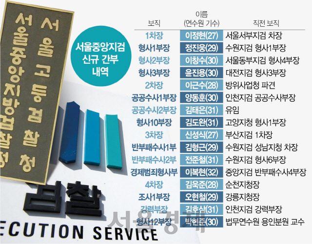 중앙지검의 신임 1차장으로는 이정현 서울서부지검 차장검사가, 2차장에는 이근수 방위사업청 파견 방위사업감독관이 온다. 이 감독관은 우병우 전 대통령민정수석비서관의 수사와 기소를 담당했다. 공직자·기업범죄 등 특별수사를 지휘하는 3차장에는 신성식 부산지검 1차장검사가, 4차장에는 김욱준 순천지청장이 온다.