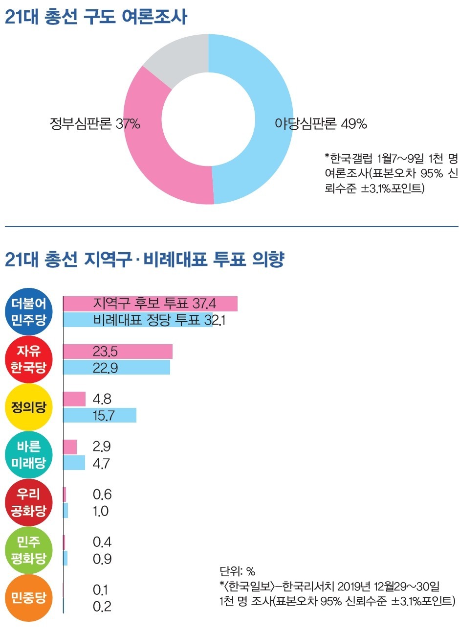 신년 여론조사에서 송씨 같은 생각을 가진 이들의 여론이 눈에 띄게 보이진 않습니다. 하지만 앞서 4년 전 20대 총선에서 중도를 표방한 ‘국민의당 돌풍’을 경험한 적이 있습니다. 당시 국민의당 정당투표율은 26.74%로, 한국당(33.50%), 민주당(25.54%)과 어깨를 나란히 하며 38석으로 원내 제3당으로 올라섰습니다. 한국방송(KBS)이 당시 출구조사를 토대로 분할투표 경향을 분석한 결과, 민주당 지역구 투표자의 20.8%가, 새누리당 지역구 투표자의 12.9%가 정당투표에서 국민의당으로 이동한 것으로 분석됐습니다. 이러한 분할투표 흐름은 거대정당에 실망한 중도·무당층 유권자에게서도 나타날 수 있습니다. 여러 신년 여론조사에서 무당층은 20% 안팎으로 잡힙니다. 지역구에서는 당선권 후보를 찍지만 정당투표에서는 ‘3당 역할’을 할 중도·보수 정당에 표를 던지는 흐름이 나올 수 있다는 것이죠. ③유형 분할투표자들의 표는 중도·보수 정당을 제3당으로 만들 힘이 있습니다. 물론 보수 통합 논의, ‘안철수 정당’ 창당 여부가 중요한 변수입니다.