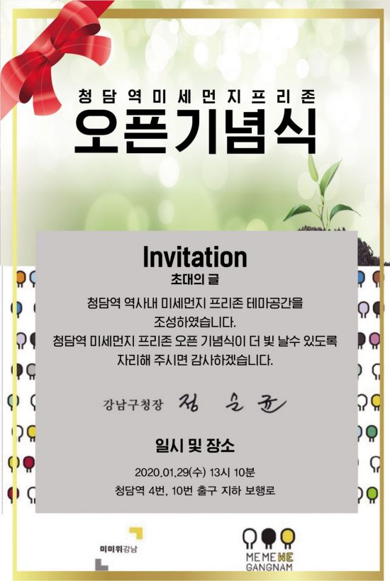 650m 청정지대!... 강남구, 청담역 지하 '미세먼지프리존' 개장