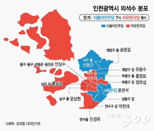 ▷300 관전평 = 양극화를 느끼는 민심이 어느 쪽에 책임을 묻느냐가 핵심이다. 한국당이 과거 송도 신도시 건설 등과 관련 인천 재정 악화에 직접 책임이 있다는 주장, 민주당이 집권 여당으로서 무한책임에서 자유로울 수 없다는 주장이 팽팽히 맞선다. 문재인 대통령에 대한 중간 평가도 이뤄질 수밖에 없다.