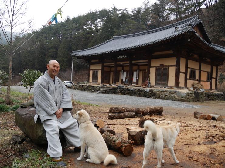 “사찰은 지역민들과 고락을 함께해야 한다는 게 평소 생각이어서 오자마자 백중날 식사를 4개 마을 경로당에서 대접했더니 어르신들이 좋아하셨다. 새벽 4시에 일어나 몸풀기 운동을 하고, 5시30분에 예불을 드리고, 6시30분에 아침 공양을 하고 설거지를 하고, 7시30분에 아이들(개 두 마리)과 포행(천천히 걸으며 참선하는 것)을 간다. 포행은 일부러 마을 쪽으로 간다. 2시간 동안 걸으며 만나는 마을 사람들과 인사를 하다보니, 이제 ‘경로당에 놀러오라’고 한다.”