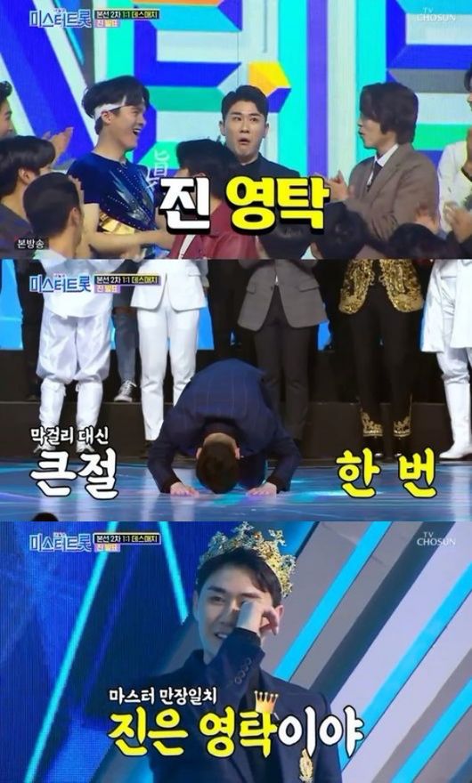 더욱이 1대 1 데스매치에서는 새로운 진 영탁이 진가를 드러냈다. 1대 1 데스매치 첫 주자로 NRG 출신 천명훈과 맞붙은 영탁은 '막걸리 한잔'을 선곡하며 압도적인 기량을 뽐냈다. 예선과 본선 1차전에서도 준수한 기량을 보여준 영탁이지만 '막걸리 한잔'의 소화력은 유독 탁월했다. 구성진 음색과 기교, 세상을 떠난 아버지를 떠올리는 곡에 대한 소화력까지 모든 게 압권이었던 것. 이에 마스터 조영수는 "이렇게까지 잘할 줄 몰랐다. 우승후보다"라고 인정했다.