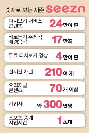 ▷동지연 팀장=시즌은 올레티비 모바일의 복사판에서 벗어나기 위해 콘텐츠를 대폭 확대했다. 음악 플랫폼 지니 뮤직과 연동시켜 보는 것뿐 아니라 '듣는 서비스'를 더해 차별화했다.