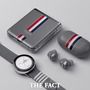 '갤럭시 워치 액티브2', '갤럭시 버즈+'도 톰브라운의 시그니처 디자인이 적용돼 전체적으로 통일된 느낌을 준다.
