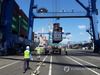9개 부두 가운데 신항 2부두를 제외한 나머지 부두에서는 크레인 아래에서 노동자들이 콘 체결 및 해체 작업을 하고 있다.