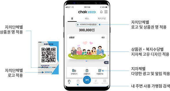 착(chak)은 블록체인 기반 플랫폼입니다. 조폐공사는 착(chak)을 운영하며 모바일 상품권 발행 및 서비스 운영을 대행합니다. 조폐공사와 계약을 맺은 지자체는 착(chak)에서 모바일 상품권을 발행할 수 있습니다. 소비자는 착(chak) 앱을 모바일에 다운로드 받아 상품권을 구매할 수 있습니다. 이후 QR코드를 찍는 것만으로도 결제가 가능합니다. 물론 가맹점에서만 사용할 수 있습니다.현재 △경기도 성남시, 시흥시, △충청북도 제천시, △충청남도 서산시, 계룡시, 서천군 △전라북도 군산시, 정읍시, 순창군, △전라남도 영광군 △경상북도 영주시에서 착(chak)을 도입했습니다.