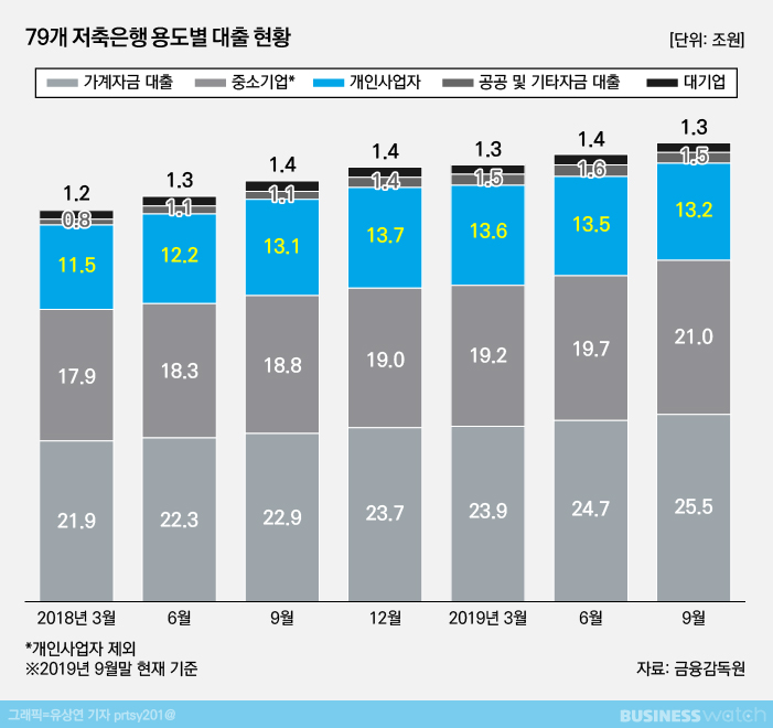 최근 저축은행 대출 통계에서 눈에 띄는 점은 전체 대출 규모가 커지는 것과는 대조적으로 이들 개인사업자 대출 규모는 계속 작아지고 있다는 것이다.