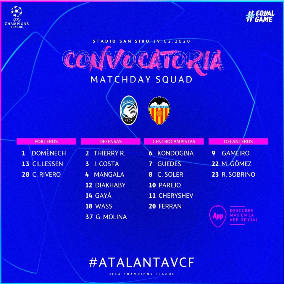 결국 이강인은 챔피언스리그 16강전 소집 명단에서 제외됐다. 발렌시아는 18일 소집 명단 19인 명단을 공개했는데 이강인의 이름은 찾아볼 수 없었다. 발렌시아는 가메이로, 콘도그비아, 체리셰프, 페란, 파레호, 가야, 실레센 등을 데리고 아탈란타 원정에 나선다.