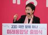 이언주 전 전진당 대표가 지난 17일 국회 의원회관에서 열린 미래통합당 출범식 ‘2020 국민 앞에 하나’ 에서 축사하고 있다. [연합] |
