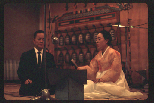 1966년 로버트 가피아스 박사 현지 조사 당시 국악 연주 현장 국립국악원 제공 |