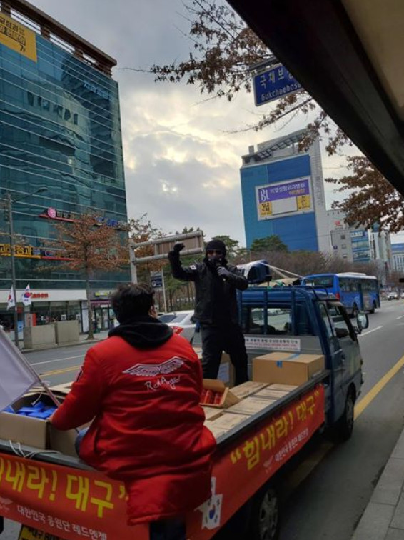 페이지 관리자는 "김보성 형님이 대구를 돌아다니면서 힘내라고 하면서 마스크를 나눠주고 있다”고 설명했다.