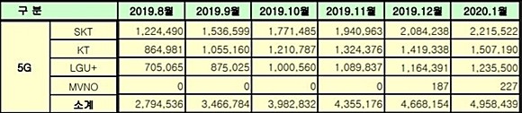 하지만 알뜰폰의 이른 5G 출시가 과연 실효성이 있는지는 또 다른 문제다. 과기정통부 무선통신서비스 통계에 따르면 올해 1월 기준 알뜰폰 5G 가입자는 총 227명에 그친다. 전체 5G 시장의 0.0046% 비중이다. 첫 5G 서비스가 개시된 전달보다 불과 40명 늘었다. 초기 단계 가입자 규모는 극히 미미한 수준이다. 성과를 기대하려면 많은 시간이 필요해 보인다.