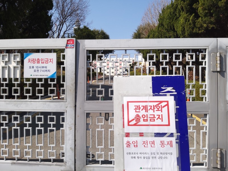 출입문은 안으로 굳게 잠겨 있었다. 오가는 주민들은 눈에 띄지 않았고, 잠긴 문 앞에 놓인 안내판에는 “관계자 외 출입금지” “출입 전면 통제”라고 적힌 문구가 선명했다. “여(여기) 사는 여성들 대부분은 인사도 잘 안 하고 말도 별로 없더라고. 좀 특이해 보인다고 생각은 했는데, 주민 3분의 2가 신천지 교인이라 카니까(하니까), 놀래(놀라) 자빠질 뻔했어요.” 8일 오후 2시께 대구 달서구 성당동 한마음아파트 건너편에서 만난 한 주민은 이렇게 말했다.
