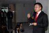 공병호 미래한국당 공천관리위원장이 10일 국회 의원회관에 마련된 공천관리위원회 앞에서 공천 심사와 관련해 설명하고 있다. [연합]