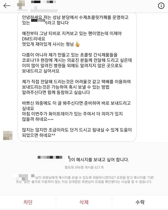 이와 더불어 노홍철은 자신이 받은 DM(다이렉트 메시지) 또한 다수 공개했다. 공개된 메시지 속에는 노홍철처럼 기부를 하고자 하는 사람들의 문의가 담겨 있다. 노홍철은 "혹시 따뜻한 표현 필요하신 분들 여기에 DM뿐 아니라 댓글 달아주시면, 그 댓글 보고 마음 나누실분들은 직접 연락드려도 좋을 것 같아요"라고 덧붙였다.