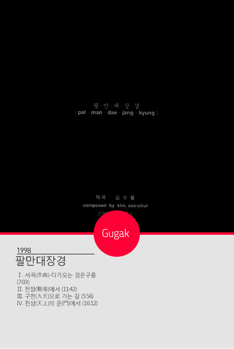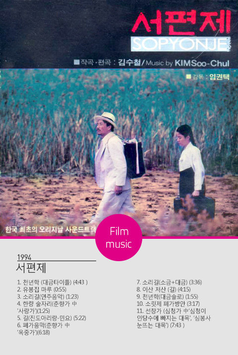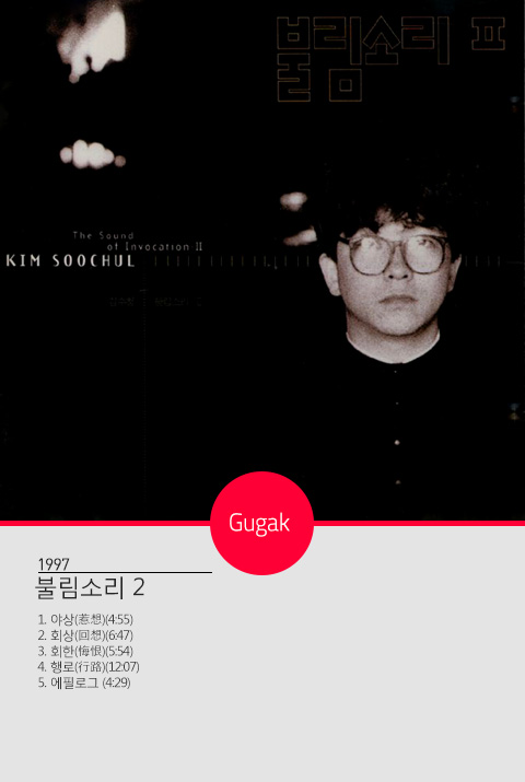‘못다 핀 꽃 한 송이’ ‘젊은 그대’ ‘정신 차려’ ‘나도야 간다’ 등 숱한 히트곡. 국내 최초로 100만 장 이상 팔린 사운드트랙인 영화 ‘서편제’를 비롯해 ‘황천길’ ‘팔만대장경’ 같은 국악과 서양음악의 만남. 애니메이션 ‘날아라 슈퍼보드’ 음악. 1986 아시안게임, 1988 서울올림픽, 2002 한일 월드컵 등 국제 행사 음악…. 김수철이 새긴 궤적은 경부고속도로처럼 장쾌하고 미스터리 서클처럼 신비롭다.