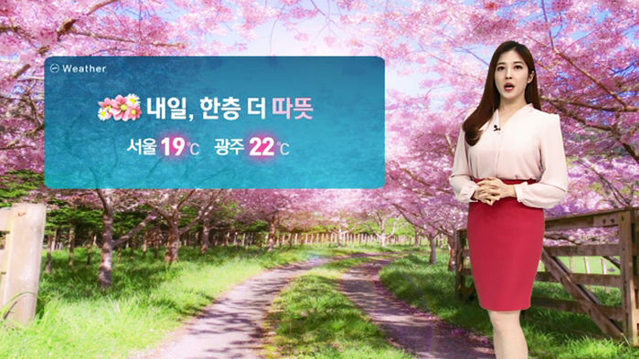 내일(25일)은 조금 더 따뜻하겠는데요, 전국 대부분 지방 20도 안팎으로 오늘보다 기온이 더 높아지겠습니다.