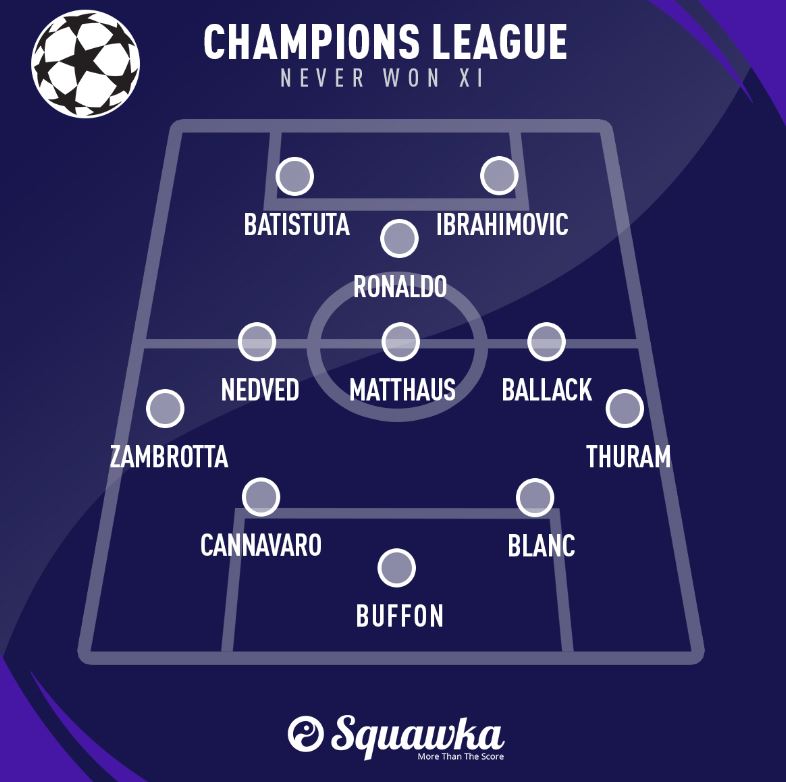 스트라이커 포지션을 맡아줄 선수로 즐라탄, 가브리엘 바티스투타, 호나우두가 선정됐다. 인터 밀란, AC 밀란, 바르셀로나, 파리 생제르망 등 많은 빅클럽에서 리그 우승을 경험하며 '우승 청부사'로 불렸던 즐라탄이지만 정작 챔피언스리그에서는 단 한 번도 우승의 기쁨을 맛보지 못하는 불운을 겪었다.