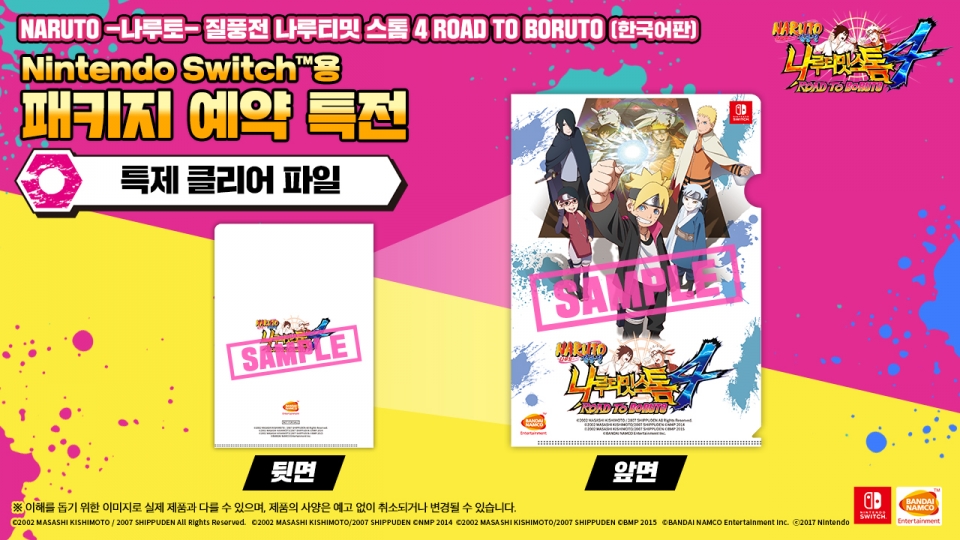 [smartPC사랑=임병선 기자] 반다이남코 엔터테인먼트 코리아(대표: 제랄드 누난)는 닌텐도 스위치(Nintendo Switch)용 닌자 대전 액션 게임 'NARUTO -나루토- 질풍전 나루티밋 스톰 4 ROAD TO BORUTO'(한국어판)의 패키지 예약 판매를 4월 9일부터 시작한다고 밝혔다.