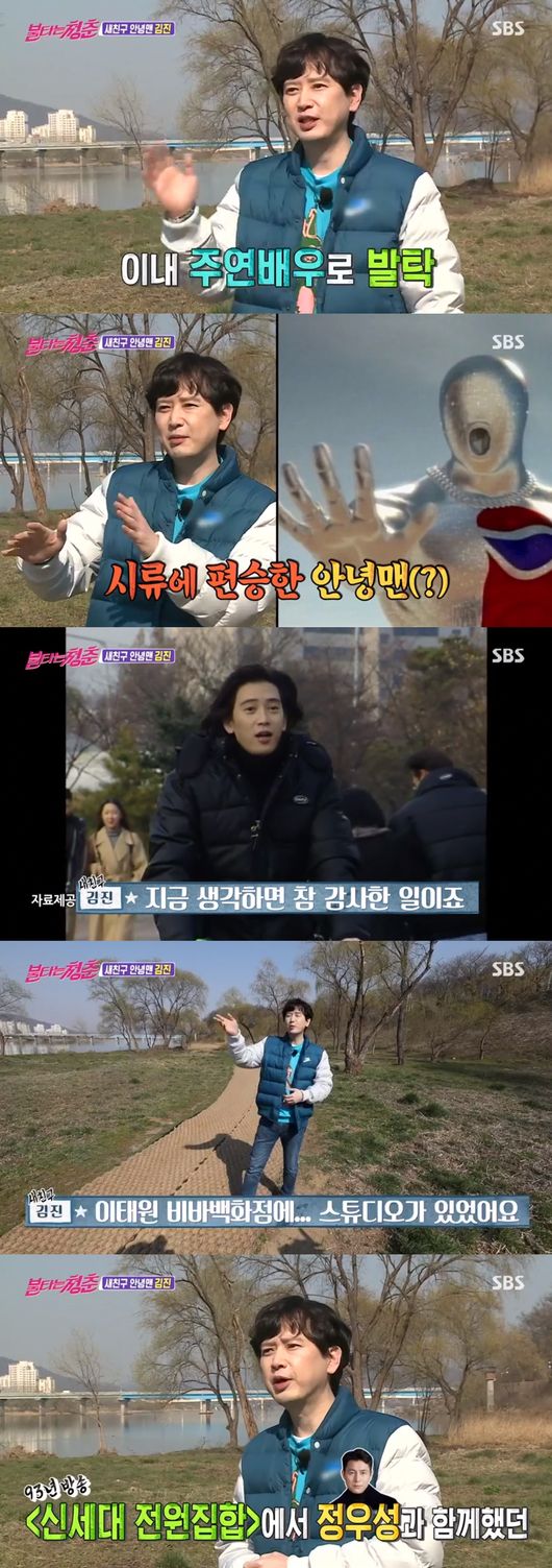 김진은 "SBS 녹화 스튜디오가 이태원에 있었다. '신세대 전원집합'에 정우성씨와 함께 나왔다. 다 친구다. 구본승씨도 나왔던 것 같다. 그땐 신세대였다. 그 시절이 참 아련하다"라고 말해 웃음을 자아냈다.