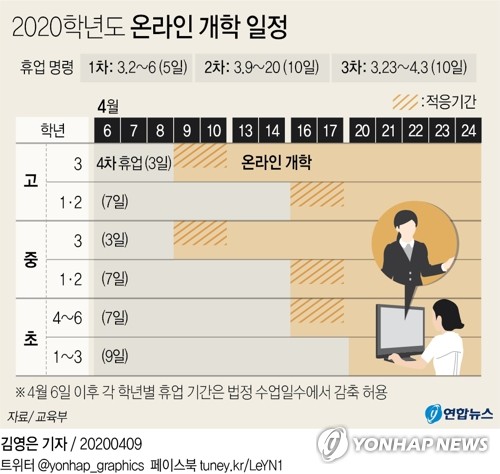 이날 중3·고3에 이어서 이달 16일에는 고 1∼2학년, 중 1∼2학년, 초 4∼6학년이 원격수업을 시작한다. 마지막으로 초 1∼3학년은 이달 20일 온라인 개학한다.