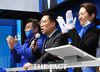 양정철(가운데) 민주연구원장은 11일 고민정 광진을 후보 지원 유세에서 "오늘로써 문재인 대통령의 복심은 양정철이 아니라 고민정이라고 표현해달라"며 지지를 호소했다. 양 원장의 지운 유세에 박수치는 윤호중 더불어민주당 사무총장과 고 후보. /배정한 기자 |
