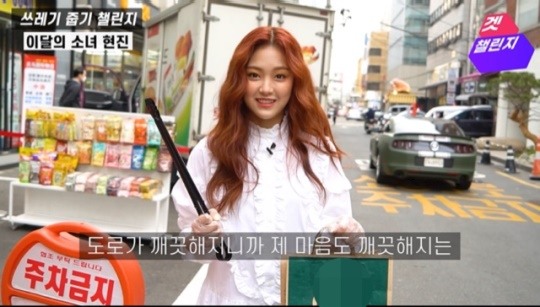 이달의 소녀 멤버 현진이 ‘쓰레기 줍기 챌린지’에 동참했다.