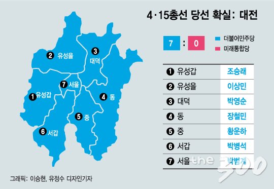 앞선 선거에서 대전을 두고 여야가 접전을 벌인 것과 대조적이다. 20대 총선에서 민주당은 4곳, 당시 새누리당(현 통합당)은 3곳에서 승리했다. 선거구가 늘기 전인 19대 총선에선 민주통합당(현 민주당)과 새누리당이 각각 3곳에서 이겼다.
