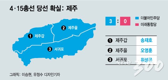 제주 선거도 압승했다. 송재호(제주갑), 오영훈(제주을), 위성곤(서귀포) 당선인이 모두 승리했다.