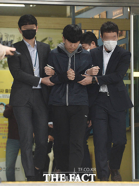 [더팩트ㅣ이새롬 기자] 온라인 메신저 텔레그램을 이용해 미성년자를 포함한 여성들을 협박해 성 착취물을 제작하고 유포한 혐의를 받는 '박사방'의 공동 운영자 강훈 이 17일 오전 서울 종로경찰서에서 서울중앙지방검찰청으로 호송되고 있다.