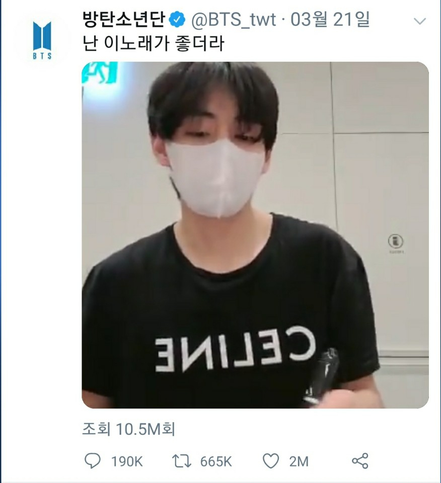 뷔가 올린 영상은 약 6시간 만에 조회수 400만을 돌파하고 100만 '좋아요'를 기록했다. 일본의 트위터 랭킹 사이트 트위플 트렌드의 유명인 순위 실시간 3위에 오르는 등 뜨거운 반응을 받았고 지난 16일 2백만 ‘좋아요’를 돌파해 SNS 최강자의 면모를 입증했다. 2017년 12월에 올린 뷔가 트위터는 방탄소년단 최초로 백만 ‘좋아요‘를 기록하기도 했다.