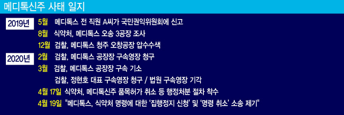 이번 메디톡신주 사태는 메디톡스 직원이었던 A씨가 지난 해 5월 국민권익위원회에 메디톡신의 제조 과정에서 시험성적서가 조작됐다는 의혹을 제기하면서 시작됐다. 식약처는 이 제보가 신빙성이 있다고 판단하고 검찰에 수사를 의뢰했다. 검찰은 제보 내용을 토대로 제조사인 메디톡스에 대한 수사를 진행했고 불법 행위를 포착해 기소했다.