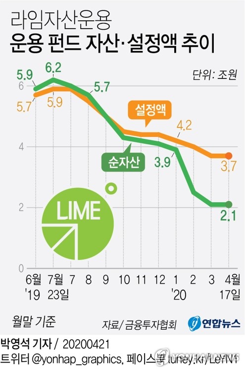 (서울=연합뉴스) 박상돈 기자 = 지난해 최대 6조원에 달하던 라임자산운용의 사모펀드 운용 규모가 2조원 수준으로 쪼그라든 것으로 나타났다.