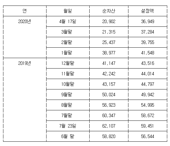 투자금인 설정액보다 실제 가치인 순자산이 더 크게 줄었다.