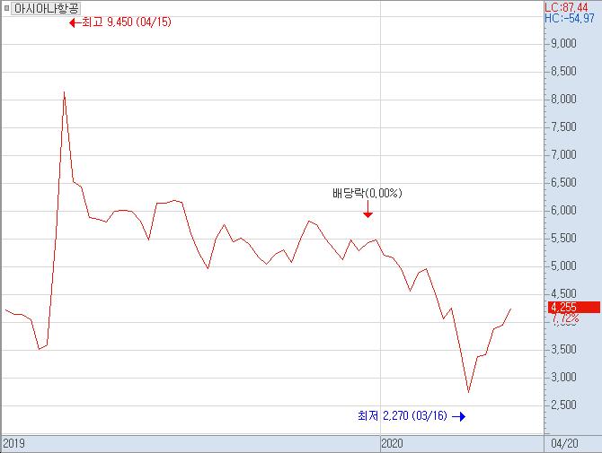이날 아시아나항공은 전 거래일보다 4.55% 오른 4255원에 거래를 마쳤다. 장 초반 한때는 24.08% 급등한 5050원까지 치솟았지만 이후 내림세를 보였다.