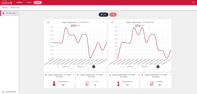 메뉴는 마이페이지, 프로젝트, 대시보드 등으로 구성된다. △마이페이지는 사용자와 관련된 모든 정보를 조회할 수 있으며 △프로젝트 메뉴는 IoT 디바이스 개발부터 계정 관리 업무를 처리할 수 있도록 돕고 △대시보드는 디바이스를 통해 플랫폼에 적재된 데이터를 라인차트, Json형태, 박스, 버튼 등 사용자의 입맛에 맞게 시각적으로 나타내준다.