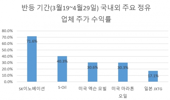 글로벌 정유사들과 비교해도 반등폭이 과도하다는 지적이다. 미국의 대표 석유화학 업체인 엑슨모빌의 주가는 지난달 19일부터 지난 28일까지 30.6% 올랐고 마라톤 오일 주가도 30.3% 상승했다. 일본 정유업체 JXTG의 반등폭은 17% 정도였다.
