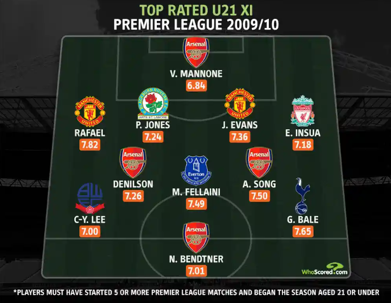 영국 '가디언'은 1일(한국시간) '2009-10 시즌 프리미어리그 최고의 젊은 선수들과 10년 후'라는 제목의 기사를 발행했다. 이 매체는 '후스코어드닷컴'이 기록한 당시 U-21 선수들의 평점을 토대로 베스트11를 선정했다.