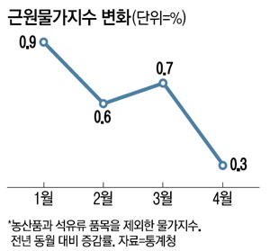 4일 통계청에 따르면 지난달 근원물가는 작년 4월 대비 0.3% 오르는 데 그쳤다. 이는 1999년 9월(0.3%) 이후 20년 7개월 만에 최저 수준이다. 경제협력개발기구(OECD) 기준 근원물가인 '식료품 및 에너지 제외지수'는 전년 대비 0.1% 올랐다. 이 역시 1999년 12월(0.1%) 이후 20년 4개월 만에 최저 수준이다. 이런 현상이 지속되면 올해 연간 수치로도 한국은행의 올해 근원물가 상승률 전망치(0.7%)를 밑돌 것으로 보인다.