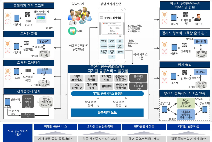 지자체 최초로 공공서비스에 블록체인 기반의 분산신원증명 플랫폼을 적용하는 경상남도는 창원시, 김해시, 경상남도 교육청을 시작으로 도내 18개 시군으로 서비스 연계를 확대할 계획이다. 한국인터넷진흥원도 부산 블록체인 특구와 경남 지역 연계 등 블록체인 기반 신원인증 플랫폼 활용 방안을 다각도로 고려하고 있다.
