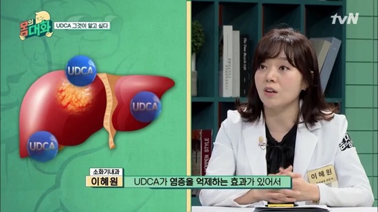 5월 11일 첫 방송된 tvN ‘몸의 대화’에서는 간 건강을 위해 필수적인 성분인 UDCA가 소개되어 관심을 모았다. 첫 회의 주치의를 맡은 가톨릭대 의정부성모병원 가정의학과 염근상 교수는 UDCA를 생소해 하는 출연진에게 “UDCA는 우리 몸에서 소화를 할 때 나오는 담즙산의 핵심 성분”이라며 “몸에서 생성되는 UDCA는 담즙산의 3%밖에 되지 않으므로 외부에서 보충하는 것이 필요하다”고 설명했다.