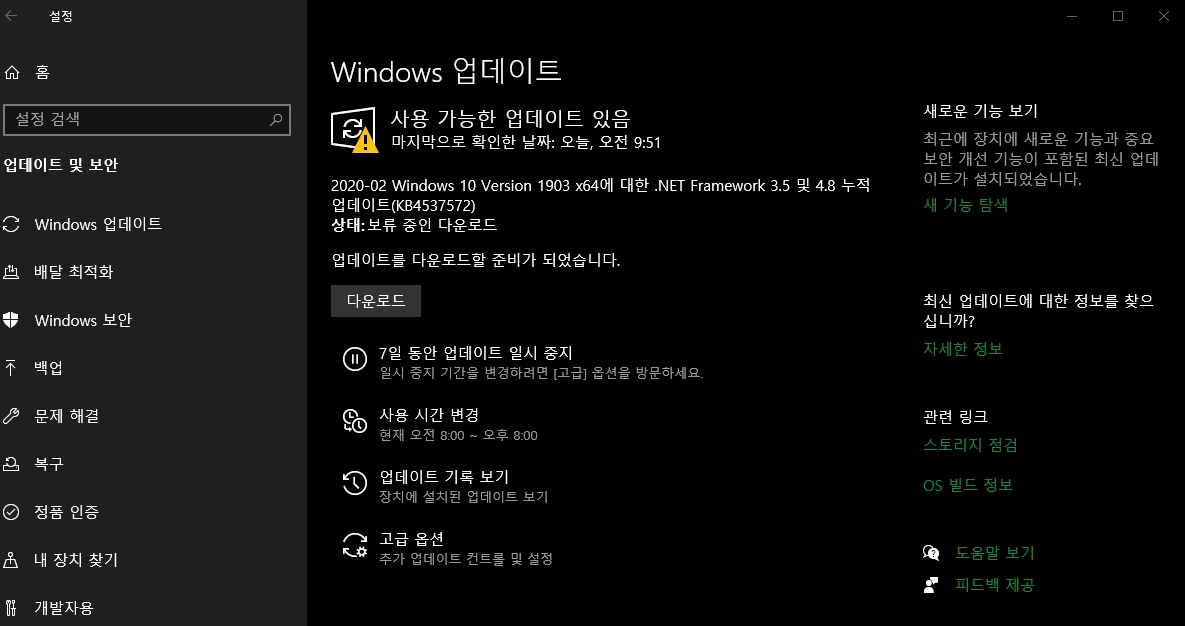 버전 1903이나 1909의 경우, 관리자 계정을 사용해 시작>설정>업데이트 및 보안을 클릭한다. 업데이트 일시 중지 타이머가 6월 8일 이전으로 설정되어 있다면, 업데이트 재개를 클릭해 자동 업데이트 프로그램을 시작하도록 하고, 패치 화요일 패치가 릴리스되는 시간 전에 업데이트를 다시 시작한다.