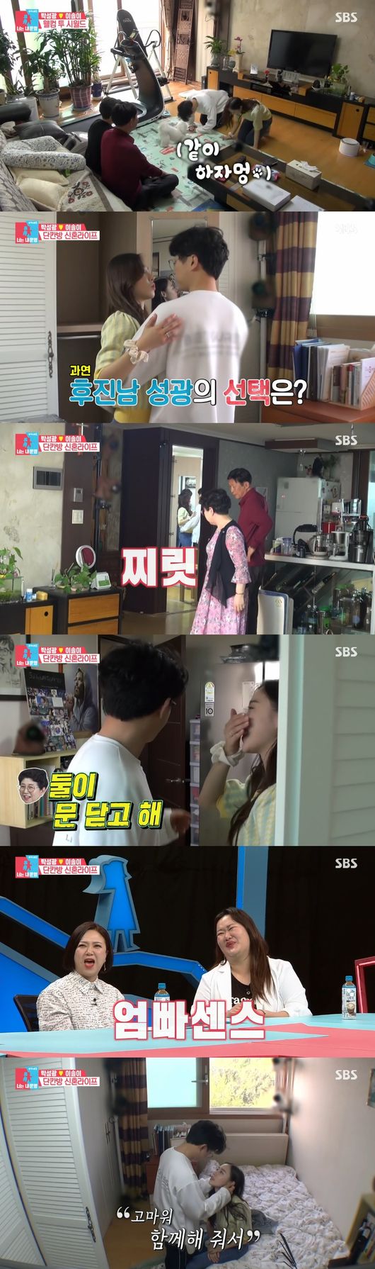 그러면서 "그래도 신혼집 임시 둥지가 생겼다"며 NEW 사랑터인 박성광 부모님 하우스로 향했다. 박성광은 "시가살이 하려했는데 며느리 솔이가 먼저 제안해 배려해줬다"면서 "한달 반 중에 반반씩 처월드랑 시월드 개장했다"고 설명했다.