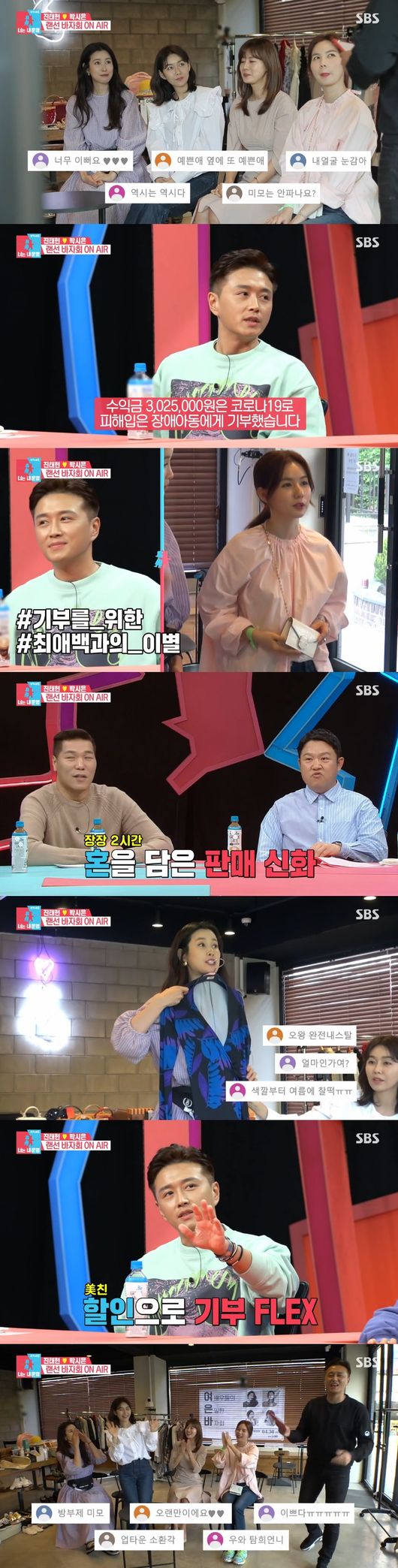 진태현이 랜선 바자회 시작을 알리면서 "마흔 시스터즈"라고 소개해 폭소하게 했다. 그러면서 랜선 바자회 오픈, 완판보장 비주얼로 판매를 시작했다. 정가 20만원이지만 8만원에 팔겠다며 적극적으로 나섰다.
