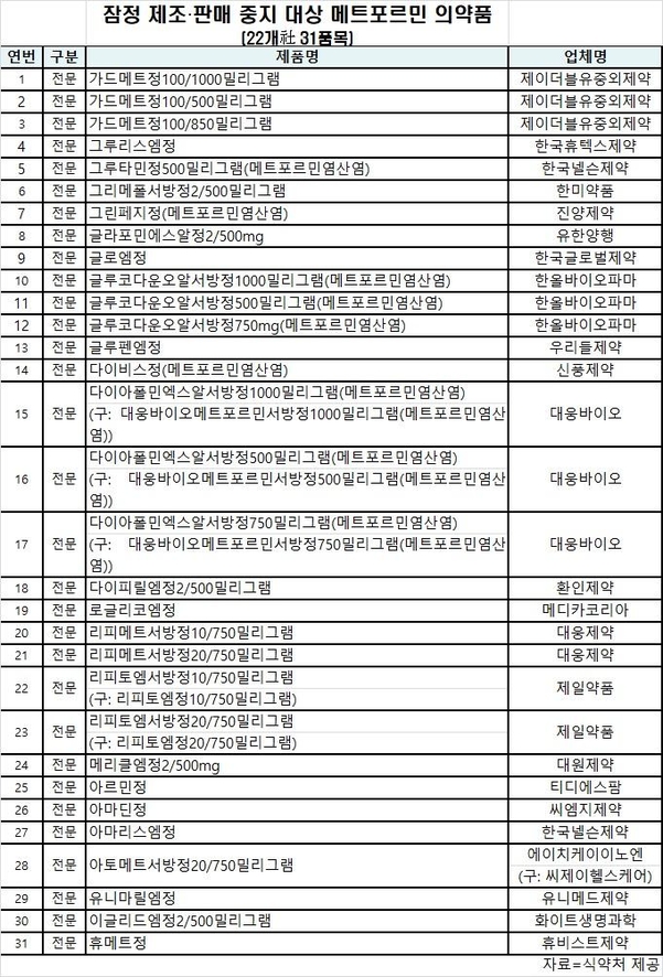 ◆식약처 "메트포르민, 발사르탄·라니티딘과 달라"