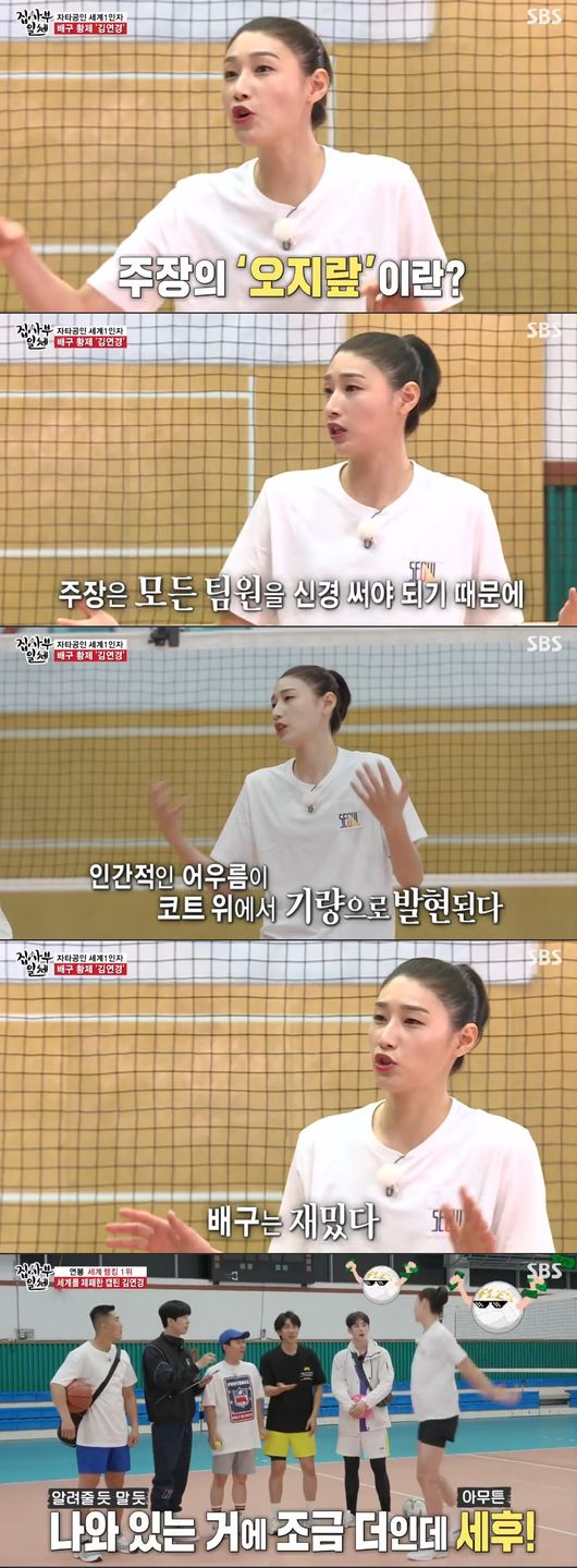 김연경은 "주장이란 역이 그 만큼 중요한 것"이라며 인간적인 어우름이 코트 위에서 기량으로 발현된다고 했다. 그만큼 책임감을 갖는다는 것이다. 그리고 마지막은 '악역'이라면서 김연경은 "선수들에게 싫은소리도 해야해, 주장은 언제나 정면으로 마주하며 훈계하는 역을 가져아한다"면서 악역같지만 팀을 위한 오지랖으로 누구보다 솔선수범한 모습을 보였다. 그만큼 국경을 초월한 실력과 리더십을 인정받은 사부였다.