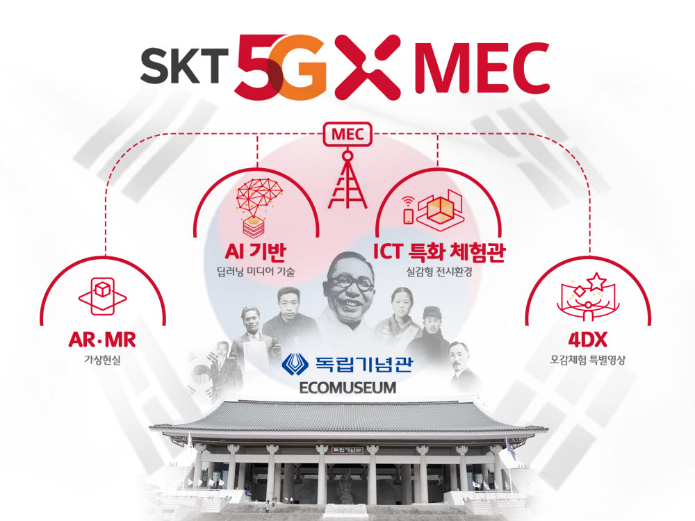 SK텔레콤은 독립기념관과 '5G MEC 기반의 AR·MR 에코뮤지엄 구축'을 위한 업무협약을 체결했다. 양 기관은 SK텔레콤이 보유한 첨단 ICT와 독립기념관의 풍부한 콘텐츠 및 자연환경 인프라를 활용해 독립기념관을 혁신적 역사체험의 랜드마크로 조성한다.