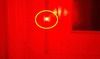 휴대폰에 빨간색 셀로판지로 제작된 '몰래카메라 탐지 카드'를 부착해 몰래카메라를 찾는 모습. 반짝 빛을 내고 있는 게 몰래카메라다. [사진 몰가드]