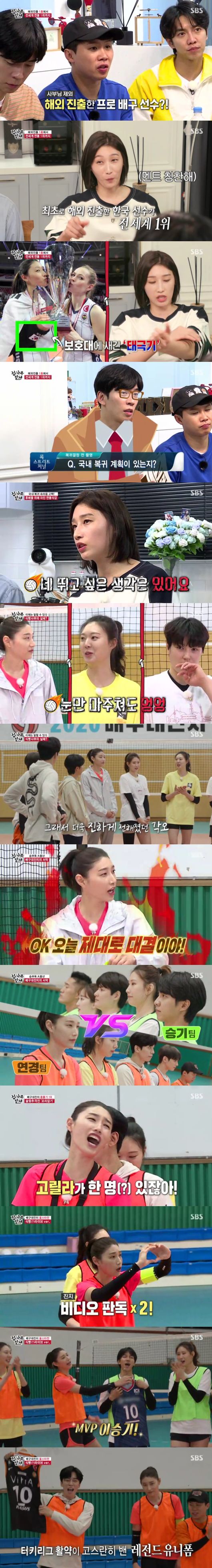 이후 양 팀은 환상의 호흡을 보여주며 치열한 경기를 이어갔고, 이승기 팀이 승리를 거머쥐었다. 경기 후 멤버들은 “너무 재밌다. 연예인 배구단 만들고 싶어졌다”라며 만족감을 드러냈고, 김연경 역시 “집중해서 잘 해주시니까 너무 기분이 좋았다”라고 덧붙였다. 그런가 하면 MVP와 MIP로는 이승기와 신성록이 선정돼 김연경의 국가대표 유니폼을 차지했다.