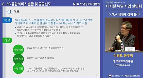 그중 융합서비스 발굴 사업에는 올해에만 400억원, 향후 3년간 총 1200억원이 투입된다. 이영로 한국정보화진흥원(NIA) 지능형인프라본부장은 '기존 시범사업과 다르게 예산 규모가 훨씬 크다'면서 '능력 있는 기업을 많이 지원해 5G B2B 분야가 새로운 먹거리가 되도록 장기 프로젝트로 진행할 계획'이라고 밝혔다.